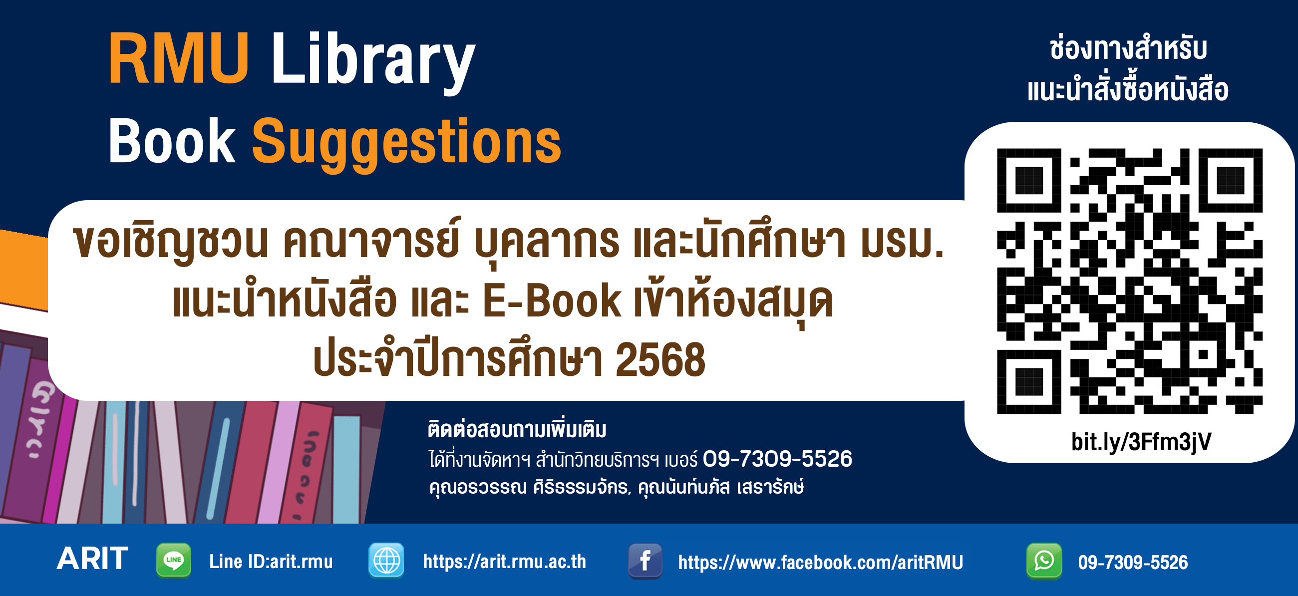 ข่าวประกาศ Book Suggestions by arit-weerachai พฤษภาคม 16, 2025 Share this post: แนะแนวเรื่อง Previousอบรมเชิงปฏิบัติการ “การสืบค้นฐานข้อมูลออนไลน์ และการเขียนบรรณานุกรม”Next ขอเชิญทุกท่านทดลองใช้งานฐานข้อมูลออนไลน์