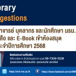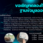 กิจกรรม อบรมเชิงปฏิบัติการ “การสืบค้นฐานข้อมูลออนไลน์ และการเขียนบรรณานุกรม” by arit-weerachai เมษายน 28, 2025 Read More