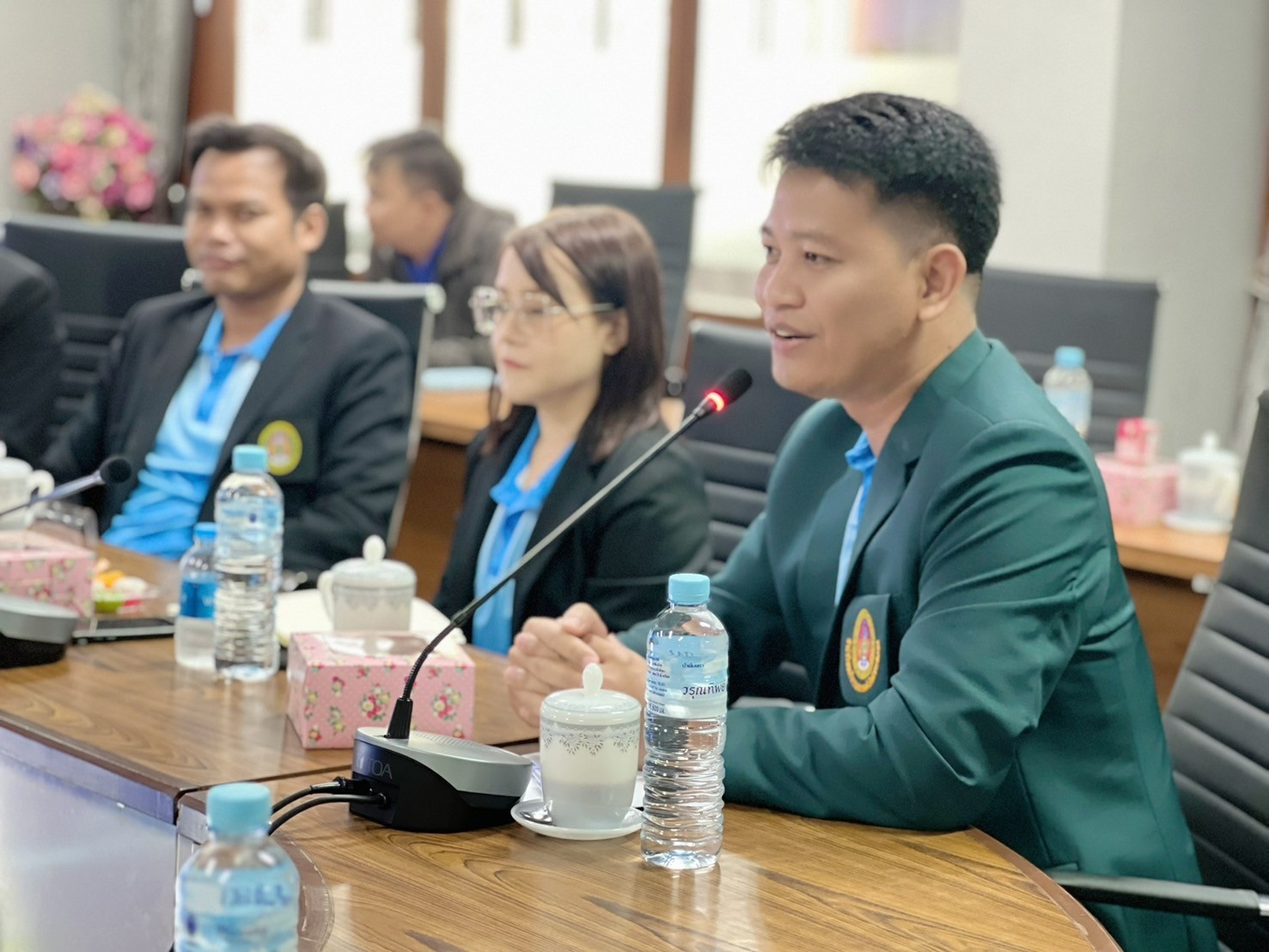 ผู้ช่วยศาสตราจารย์ ไปรมา เฮียงราช พร้อมด้วยผู้บริหารและบุคลากร ให้การต้อนรับ อาจารย์สุวัฒน์ กล้วยทอง รองผู้อำนวยการสำนักวิทยบริการและเทคโนโลยีสารสนเทศ มหาวิทยาลัยราชภัฏสุรินทร์
