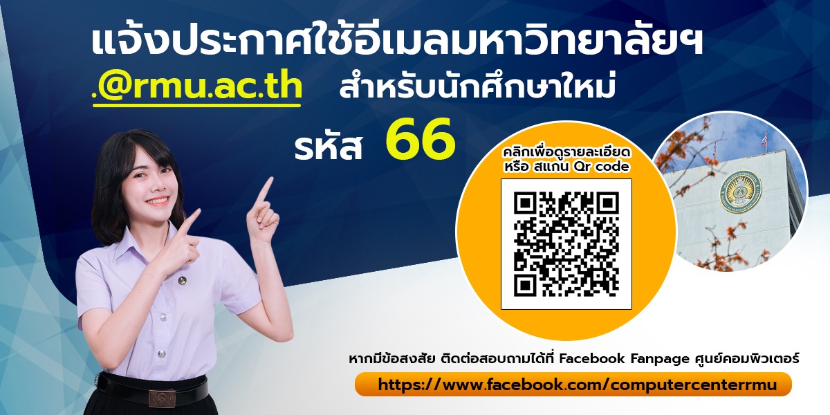 แจ้งใช้อีเมลมหาวิทยาลัย @rmu.ac.th สำหรับนักศึกษาใหม่
